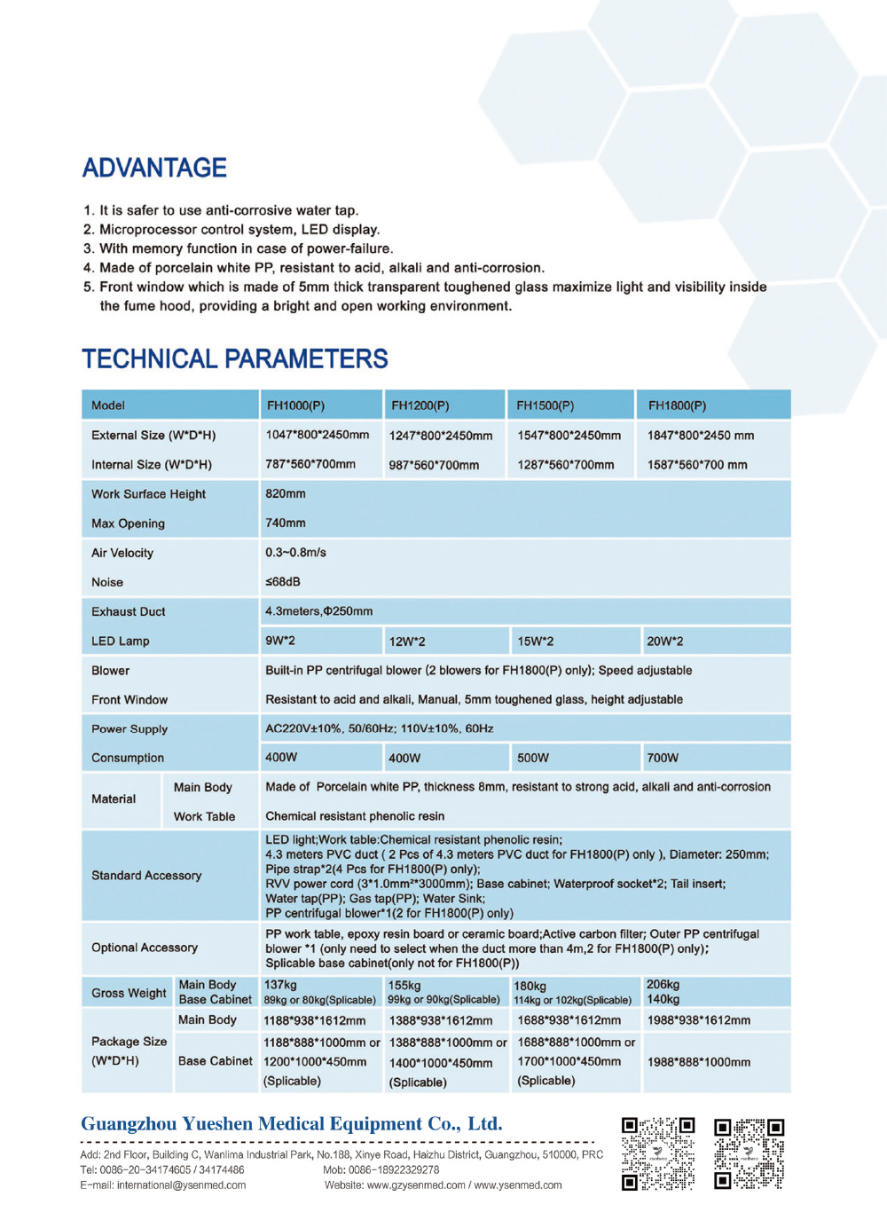 Blower Built-in PP centrifugal blower(2 blowers for FH1800(P) only), Speed adjustable