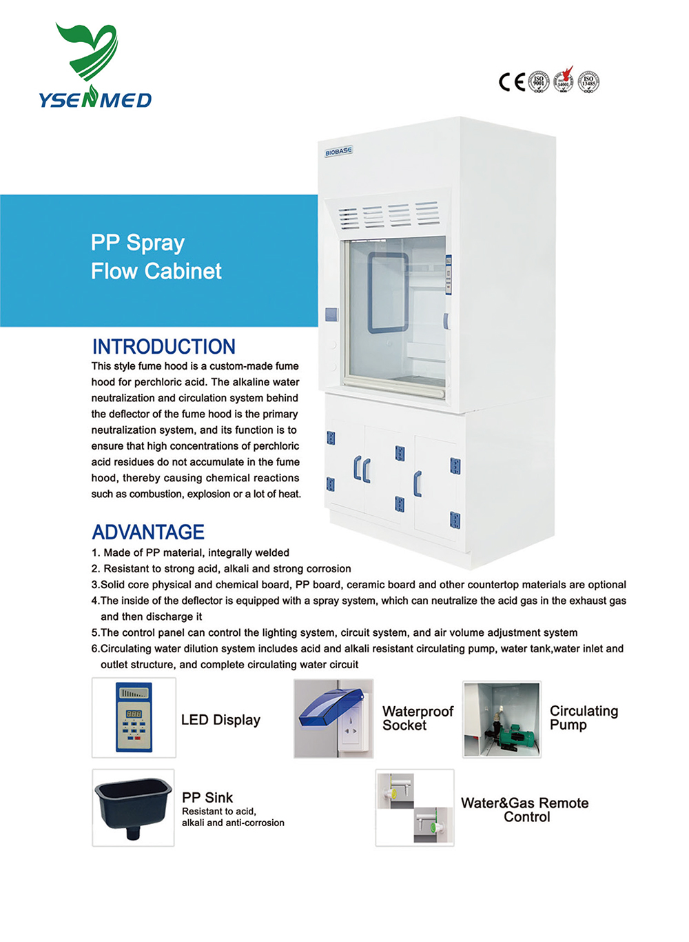 This style fume hood is a custom-made fume hood for perchloric acid. The alkaline water neutralization and circulation system behind the deflector of the fume hood is the primary neutralization system, and its function is to ensure that high concentrations of perchloric acid residues do not accumulate in the fume hood, thereby causing chemical reactions such as combustion, explosion or a lot of heat.