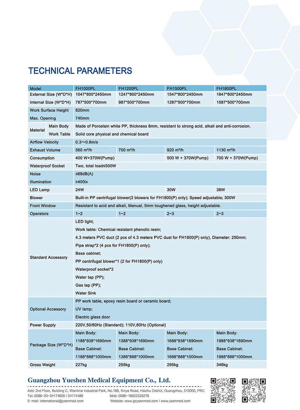 Blower Built-in PP centrifugal blower(2 blowers for FH1800(P) only); Speed adjustable; 300W