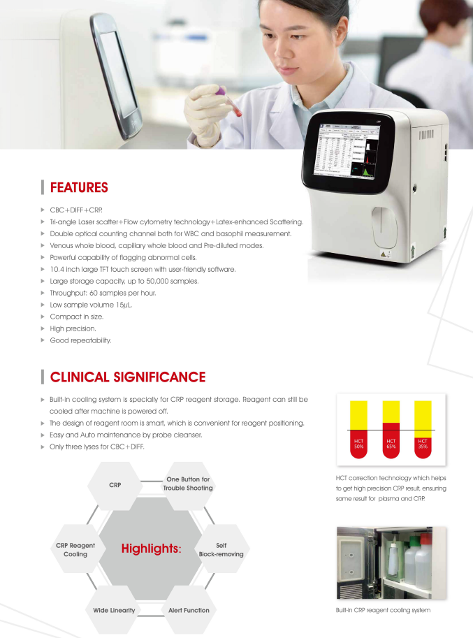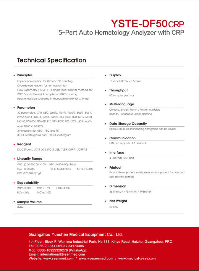 YSTE320 Fully Auto 3-Part Hematology Analyzer Medical Blood Analyzer