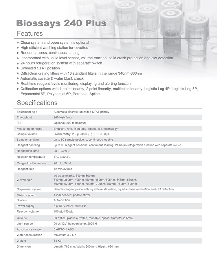 Snibe diagnostic biochemistry analyzer fully automatic Biossays 240 Plus