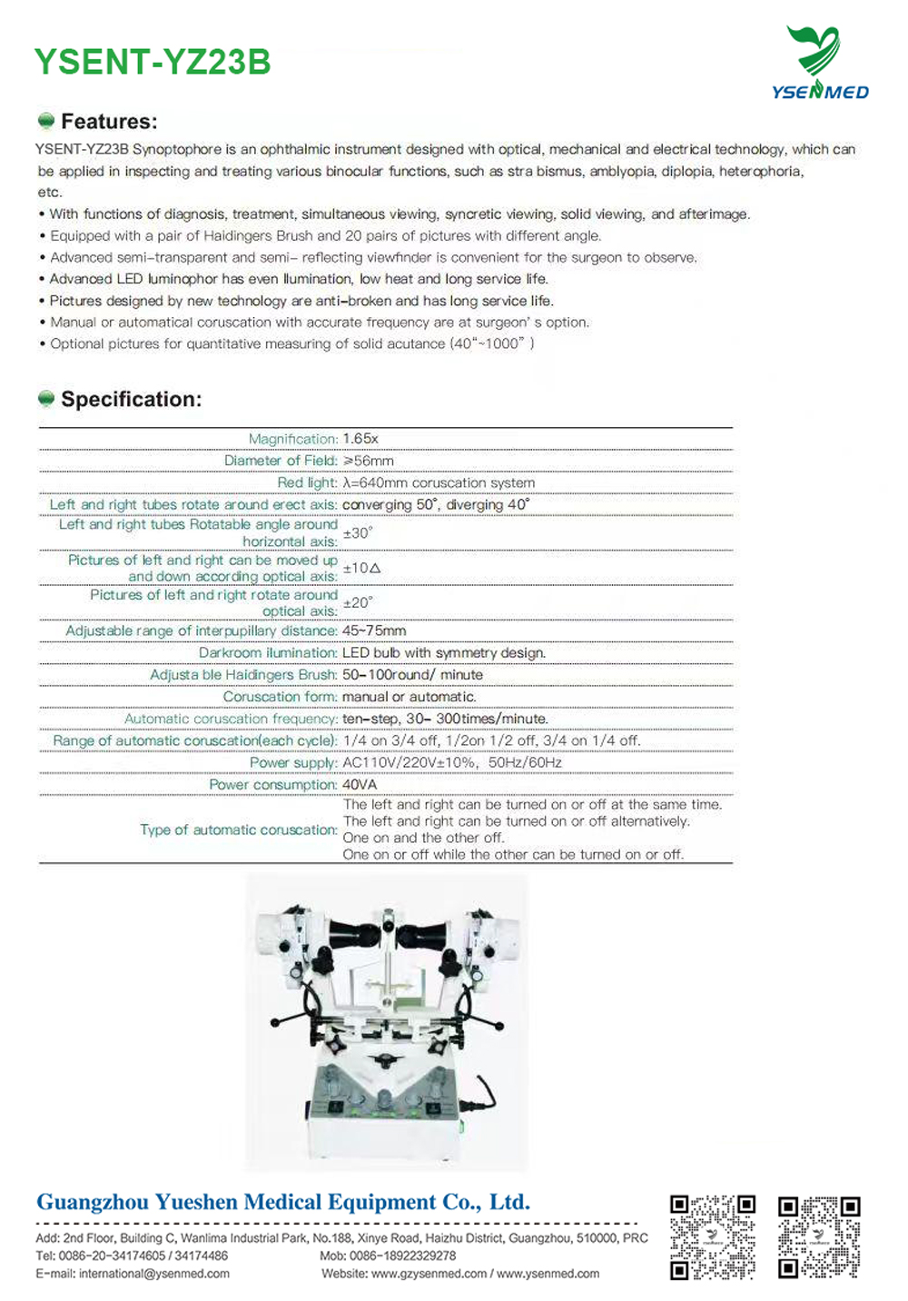 ◆ Red light scintillation: The YSENT-YZ23B synoptic machine is not only equipped with a Hedinger brush device, but is also designed with a red light (λ=640nm) scintillation system for use in the correction of paracentral gaze amblyopia.