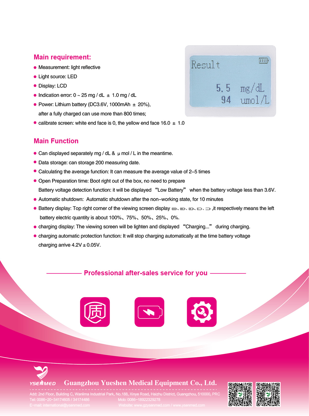 Indication error: 0~ 25 mg / dL ± 1.0 mg / dL