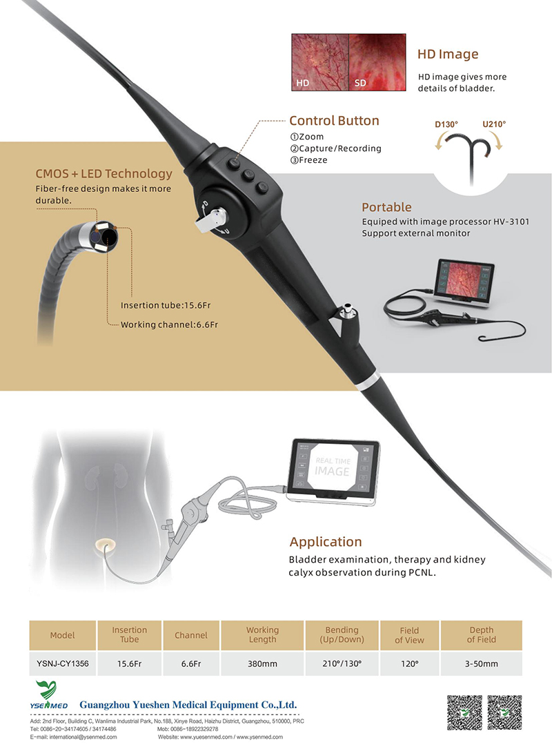 YSENMED HD video nephroscope video cystoscope flexible video cystonephroscope